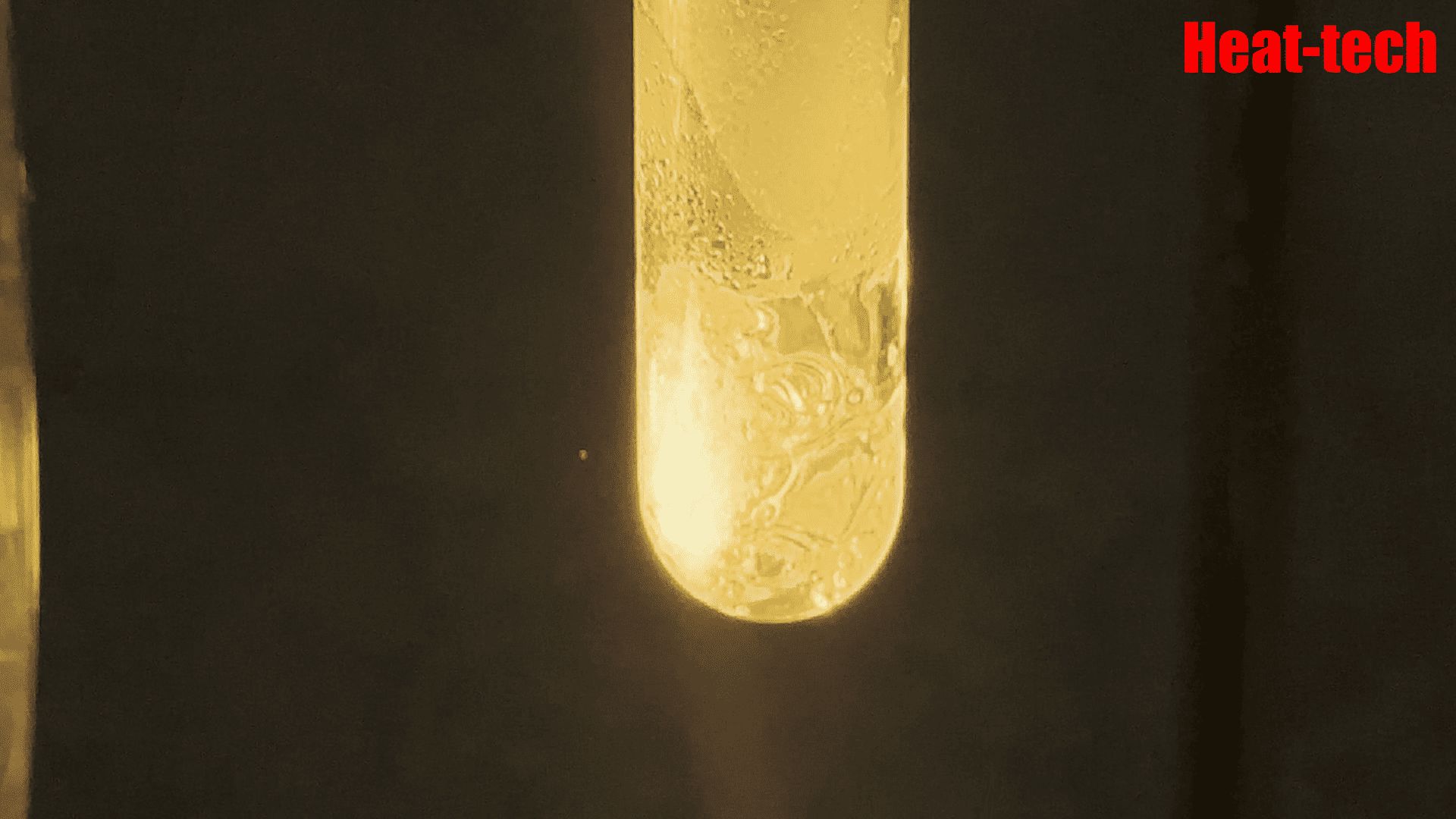 Boric acid (H₃BO₃) was locally heated in a test tube using infrared radiation to observe its dehydration behavior during heating.