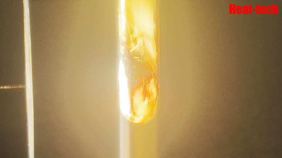 The generated volatile components were cooled and condensed due to the temperature gradient inside the test tube, resulting in the deposition of tar-like and oily substances on the inner wall.