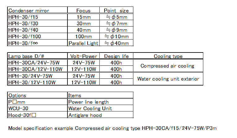 HPH-30 combines condenser mirror and lamp base, designate the length of the power supply line and use it.