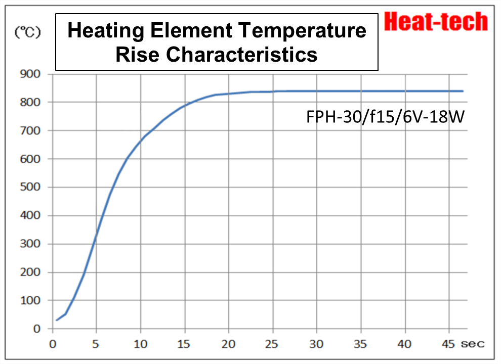 It reaches a high temperature of 800 °C in just 15 seconds.