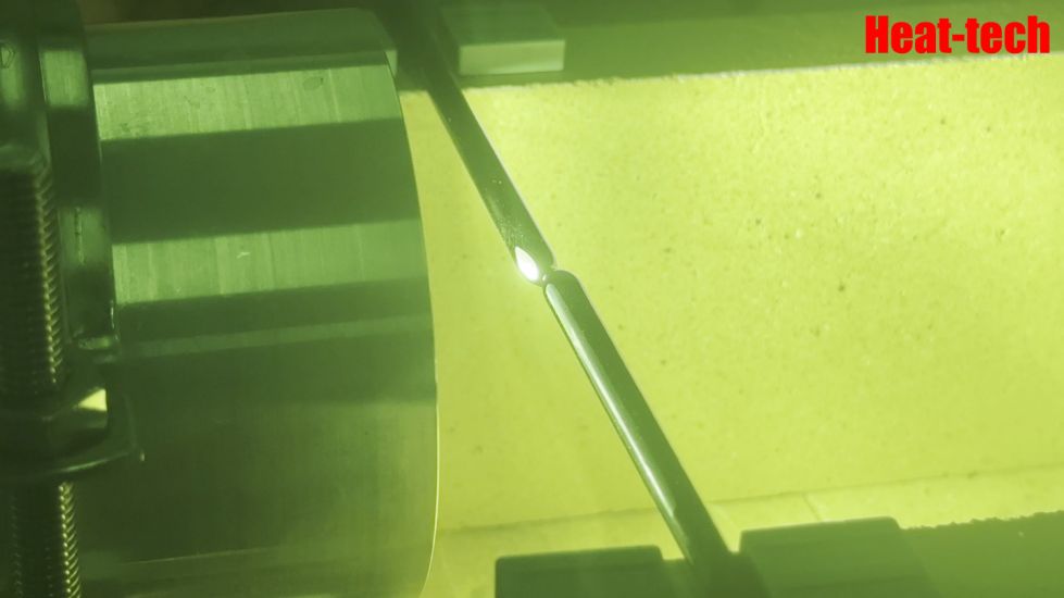 할로겐 포인트 히터를 사용하여 흑색 납유리봉에 적외선을 국소적으로 조사하여 급속 융해 과정을 관찰했습니다.