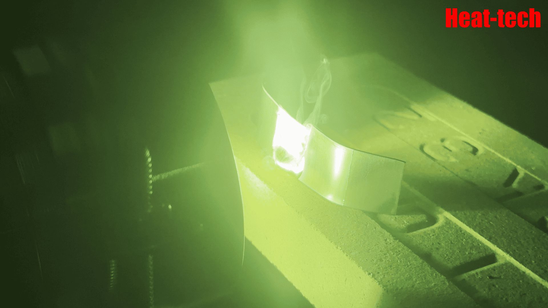 가열 중에는 표면 산화물의 분해와 아연 증기로 인해 흰 연기가 발생하며, 이는 금속 온도가 매우 빠르게 상승하고 있음을 보여주는 시각적 지표입니다. 이 영상은 금속 재료에서의 적외선 국소 가열 반응성과 높은 열 집중 효과를 확인할 수 있는 데모입니다。