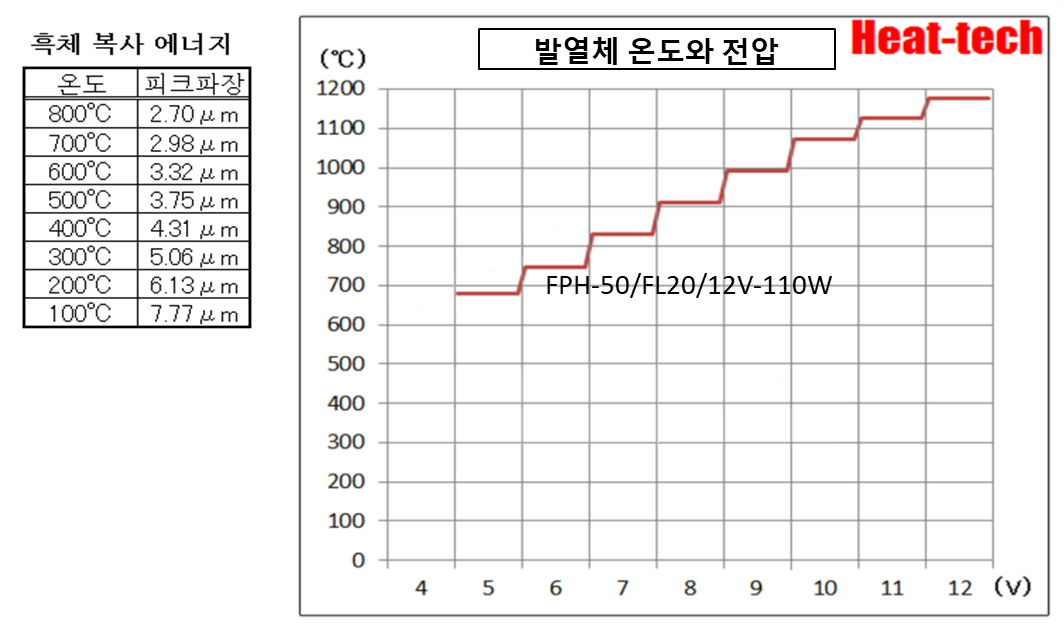 발열체의 온도를 조절함으로써 원적외선의 피크 주파수를 관리할 수 있습니다.
